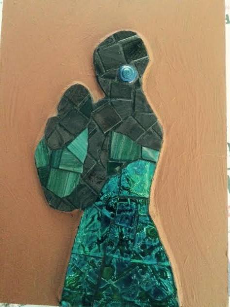 Niet alleen gebruik(te) ik het glas om de mozaïeken te maken maar ik begon ook te schilderen. Het onderwerp mozaïek ik nu en de omgeving wordt door mij geschilderd ( met of zonder afbeeldingen)